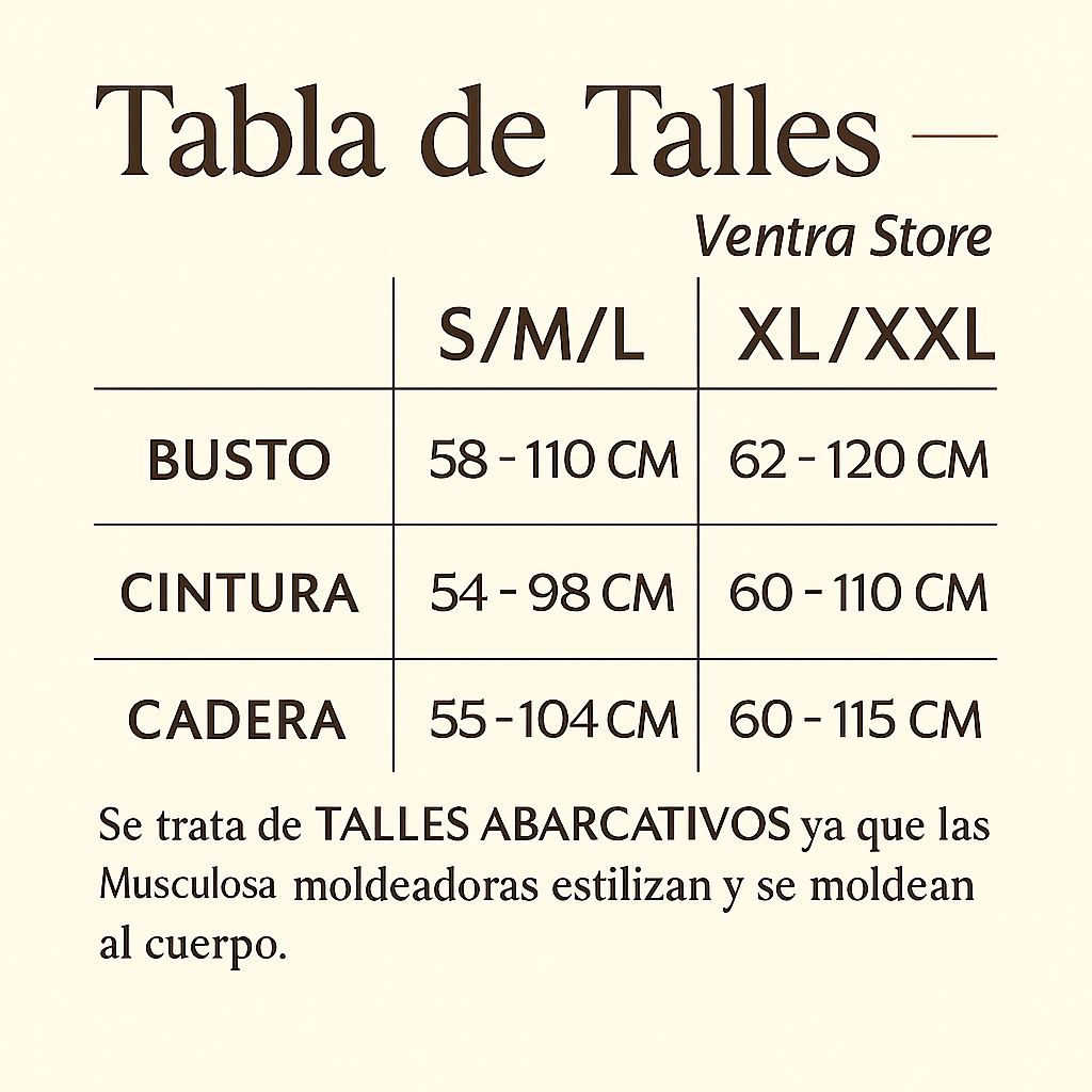 Recomendamos guiarte por tu cintura y busto: elige la talla que usás normalmente en tops. Si estás entre tallas, optá por la mayor para mayor comodidad. (En la sección de especificaciones abajo incluimos la guía de talles.)